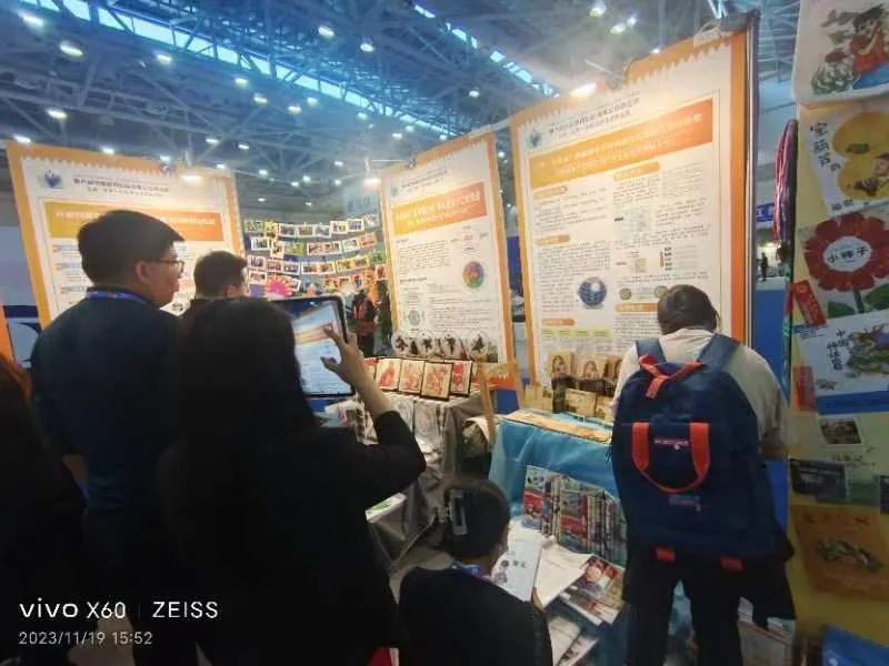 沈小的全景阅读展台中既有具有前瞻性的理论实践研究,也有琳琅满目的儿童作品。全景式阅读专著、全景式阅读指导手册整本书原创歌盘、全景阅读文创手套袋、学生精致自编书、主题式阅读的“创客+”“沙画+”“剪刀+”“衍纸+”等向大家呈现了二十载全景阅读研究的理论内涵和实践成果。
