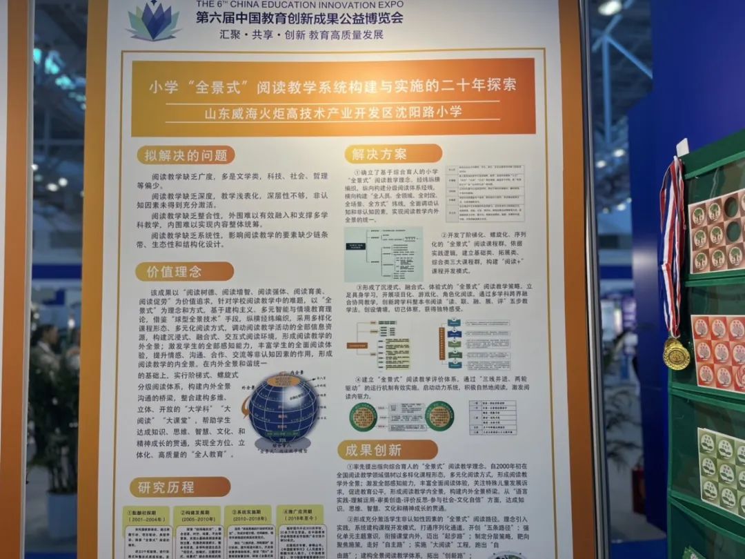 威海高区沈阳路小学教学成果《小学“全景式”阅读教学系统构建与实施的二十年探索》经过层层遴选,亮相中国教育创新成果公益博览会,得到了全国各地学校的高度关注。