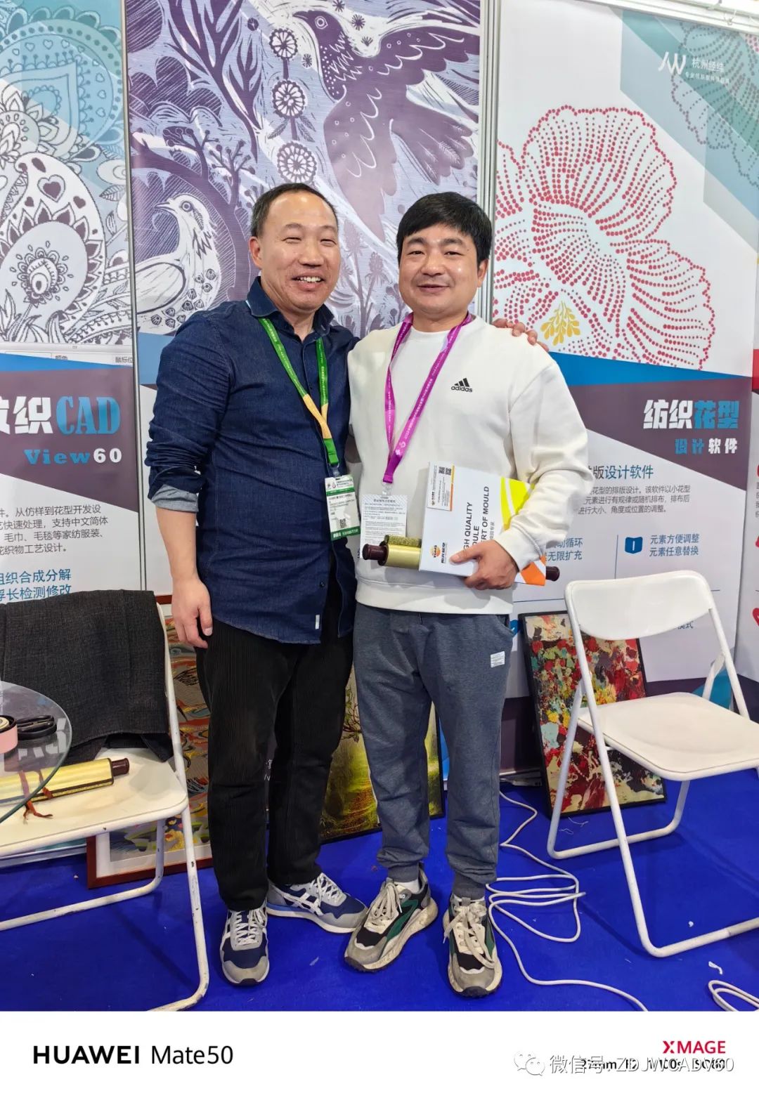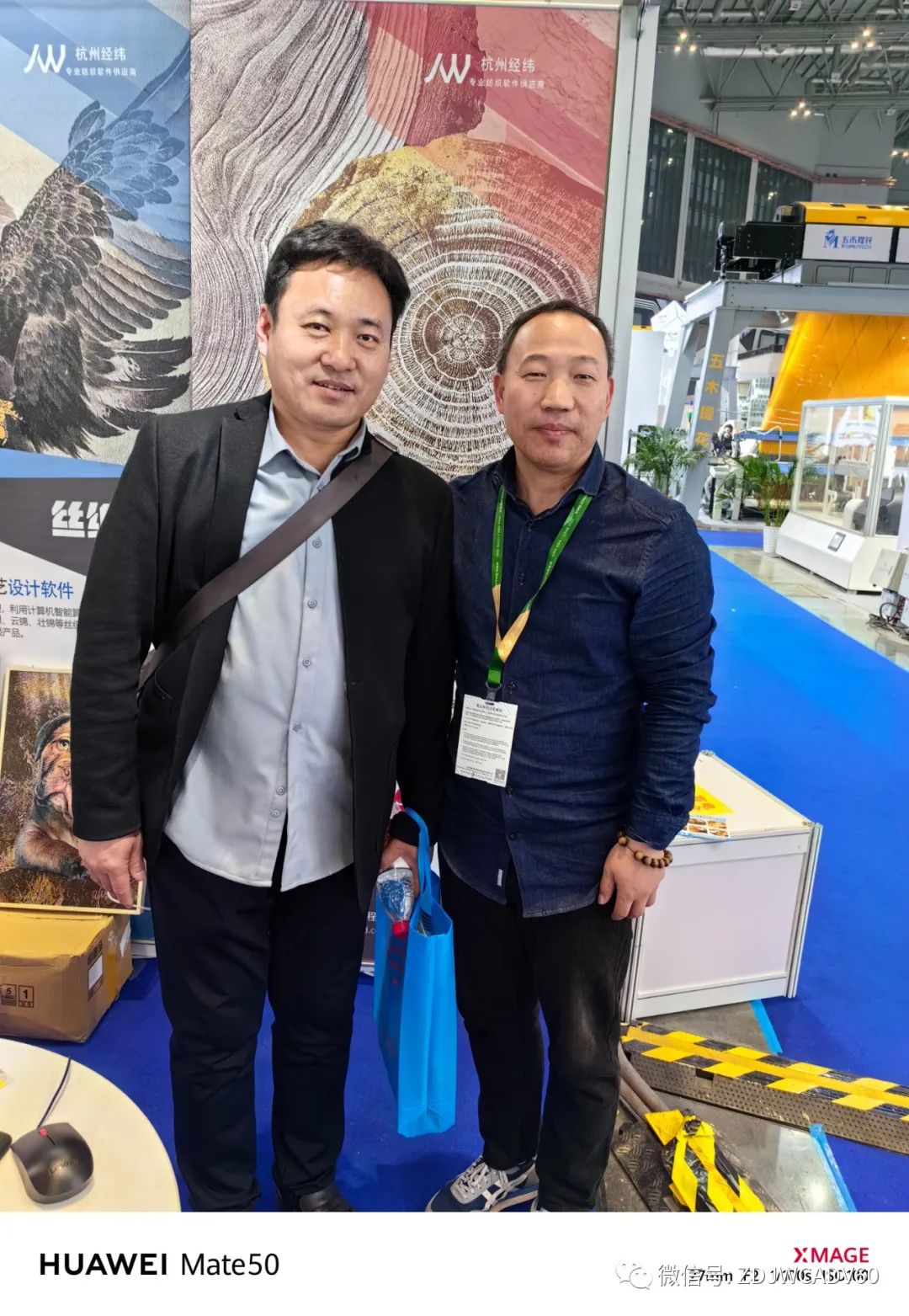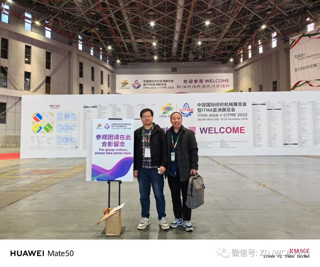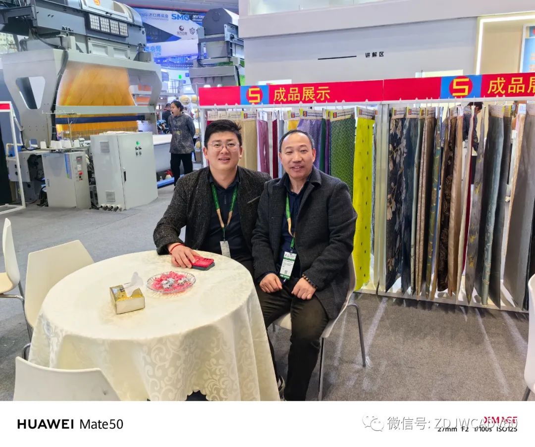 之后经过其他做织机和装造等配套厂家,时间差不多回展位等约好的胡总来访。和胡总合照留念。