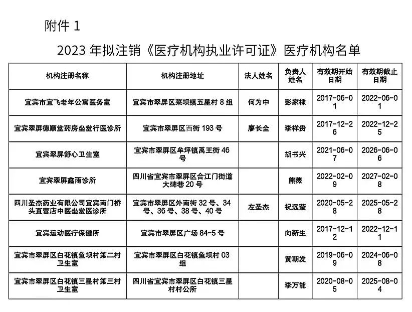 附件:1.2023年拟注销《医疗机构执业许可证》医疗机构名单