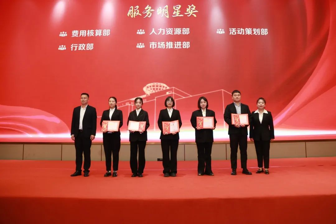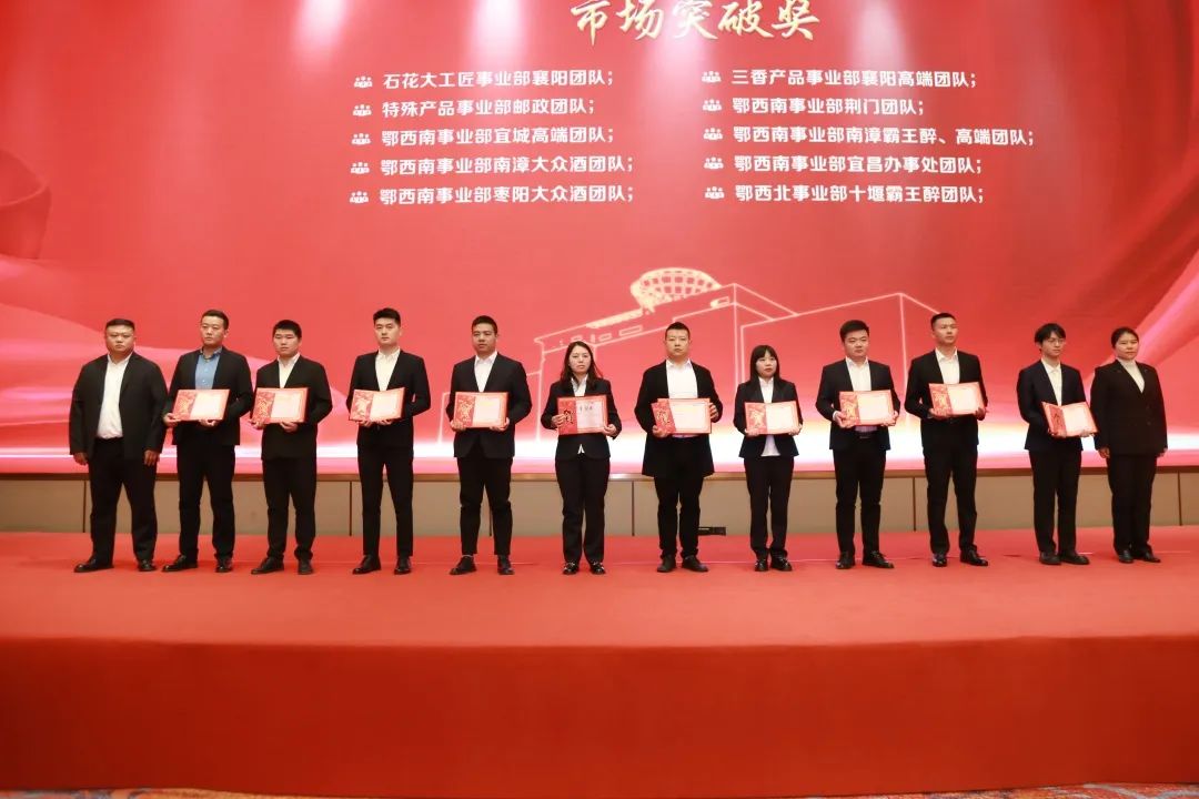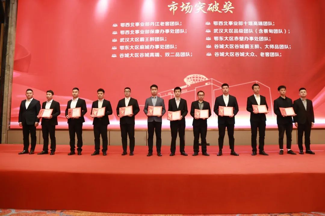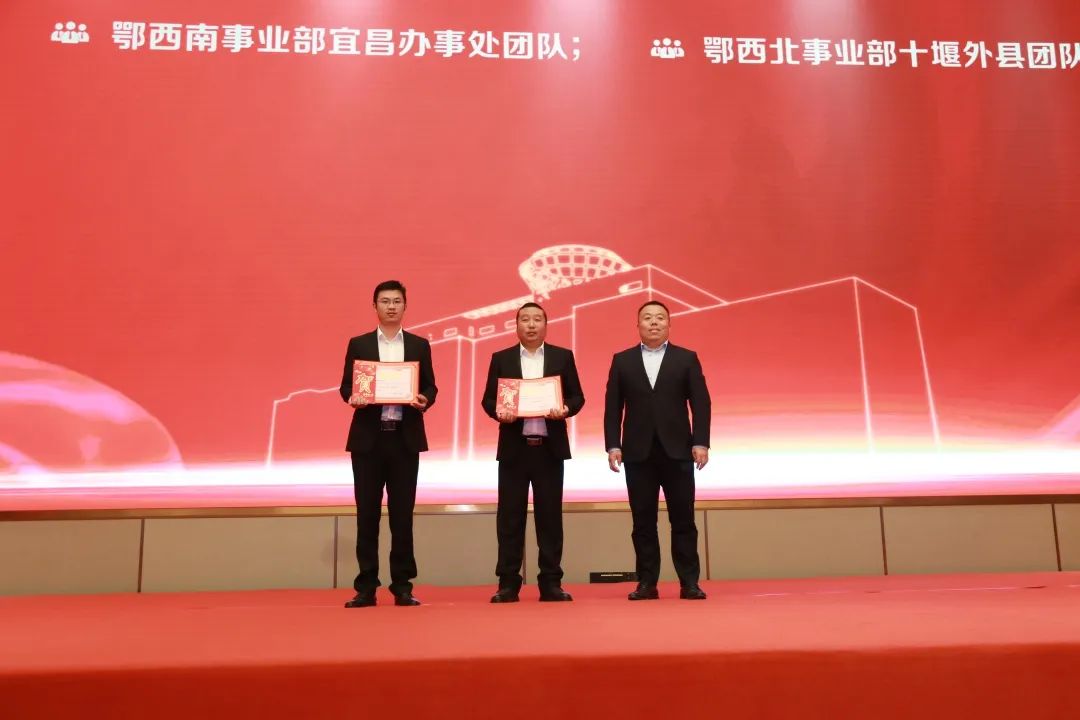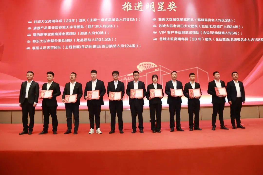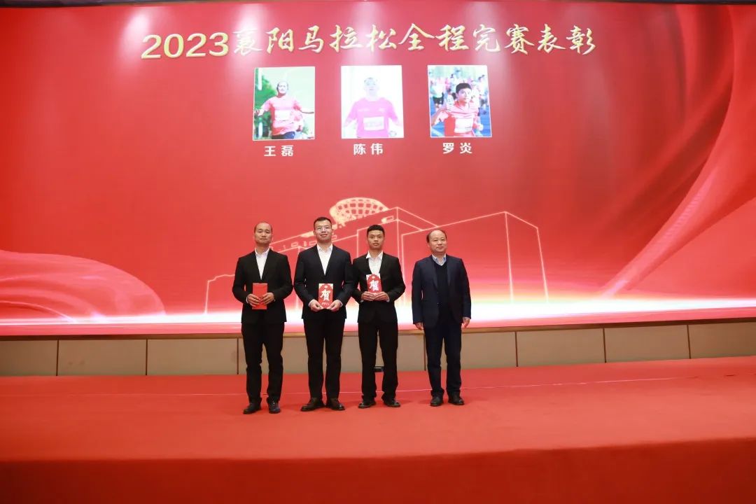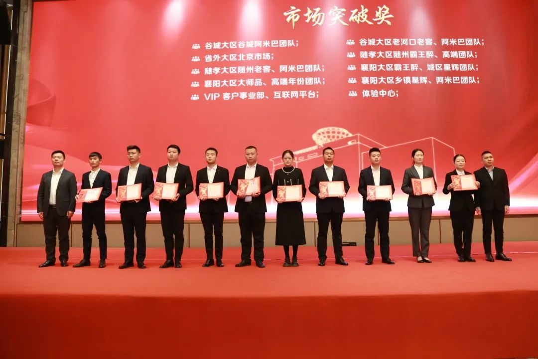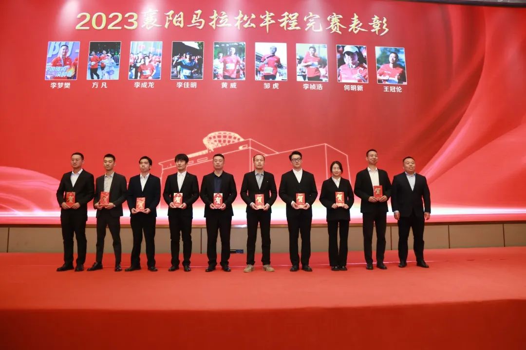 曹卢波、李雨松等领导在会上为2023年襄阳马拉松完赛员工颁发了奖励,并对在中秋营销工作中涌现出来的先进集体、先进个人颁发了奖金和证书。