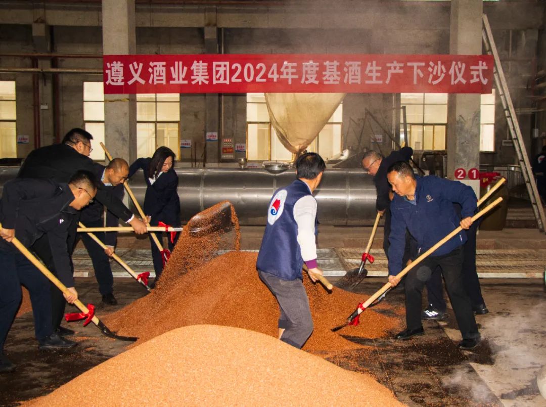 11月18日,遵义酒业集团有限公司2024年度基酒生产下沙仪式圆满举行。在遵义酒业集团"下沙"仪式上,副董事长龙静、总经理陈琴与在场领导嘉宾们一起参与启动润粮操作,共同见证并体验遵义酱酒的传统“下沙”酿造工艺,以及遵义酱酒人最质朴、最炽热的酿酒初心。