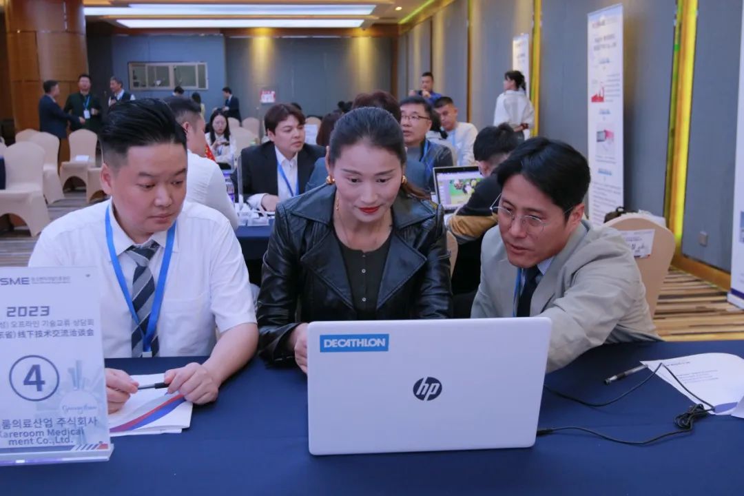 中韩是友好近邻,今年已建交30周年,中韩两国人民友谊源远流长。为促进中韩企业的交流与合作,加深双方的了解互信,深化务实合作。11月16日,由韩国中小企业振兴公团深圳代表处主办,广东省科技服务产业技术创新联盟、广州市牙齿保健协会、广州市美容美发化妆行业协会、广东省有机农业协会、广东省医疗器械行业协会、全球跨境帮.跨境产业赋能平台共同协办,西朝进出口贸易(广州)有限公司承办的“2023 中韩(广东省)技术交流洽谈会”在广州圆满举行。来自韩国的8家医疗、美容、农业、油墨领域技术相关的企业与会,对接了超过50家企业,近一百人参加了本次洽谈会,旨在促进中韩两国企业在相关高科技领域的技术发展,积极推进新技术推广、产业技术发展和交流合作。本次洽谈会采取一对一洽谈模式,安排合理紧凑,既让各家企业有充足的时间进行洽谈,又为大家共同节省了时间。中韩两国企业现场沟通会谈,气氛积极友好,场内场外互动频繁。有多家中方企业对韩国高科技技术有兴趣和合作意向,希望再跟进,深入了解洽谈。技术交流洽谈会取得圆满成功。韩国中小企业振兴公团全球事业处部长文俊植代表主办方首先致词,对应邀出席2023 中韩(广东省)技术交流洽谈会的领导、专家、企业代表表示热烈欢迎和衷心感谢!韩国中小企业振兴公团深圳代表处所长金圣受,广东省科技联盟荣誉主席姚化荣,广东省科技金融服务中心原副主任、联盟专家委员会专家胡峻,中国国际贸易促进委员会广州市委员会副主任张超平,中国国际贸易促进委员会广东省委员会部长王蜀燕,中国国际贸易促进委员会广州市委员会贸投部部长郭海坚,广州市牙齿保健协会会长陈建平,联盟副主席刘伟中,广州市美容美发化妆行业协会副会长吴玉婷,联盟副主席兼秘书长符任庸,广东省医疗器械行业协会秘书长邹民,广东省有机农业协会秘书长廖建平,联盟常务副秘书长郑茄玲,广州市林桦药械有限公司总经理夏胜花等领导出席了本次洽谈会,大家欢聚一堂,畅叙友情,共谋发展,气氛热烈。