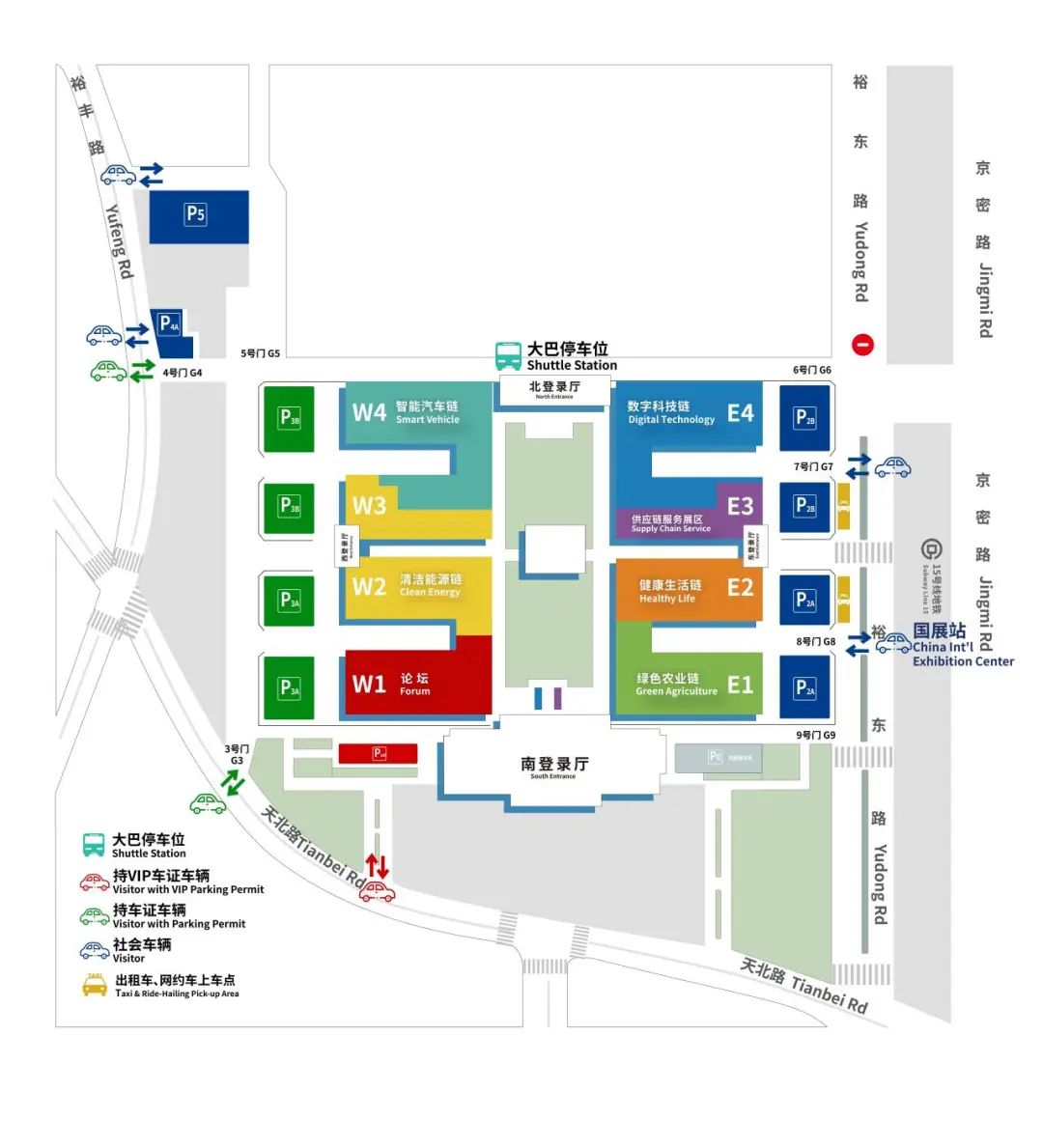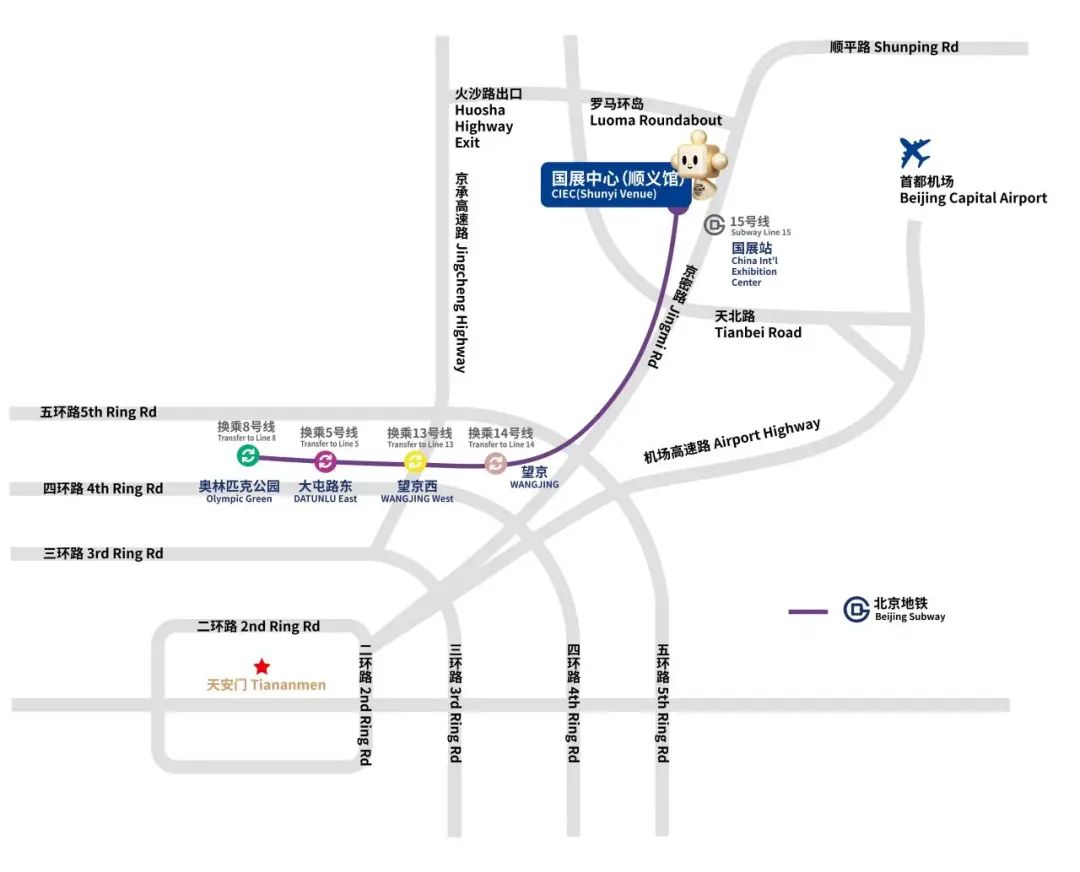 地铁:乘坐地铁 15 号线到“国展”站下车即到。地铁15 号线可换乘地铁 5 号线、8 号线、13 号线、14 号线。