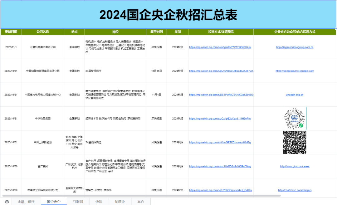 ✅扫码即可领取24届秋招实习岗位表+名企国企内推表+笔面试资料
