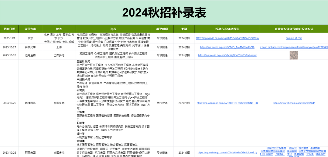 内含名企秋招最新网申链接+DDL时间,覆盖互联网、金融、咨询、快消、奢侈品、房地产等所有行业。