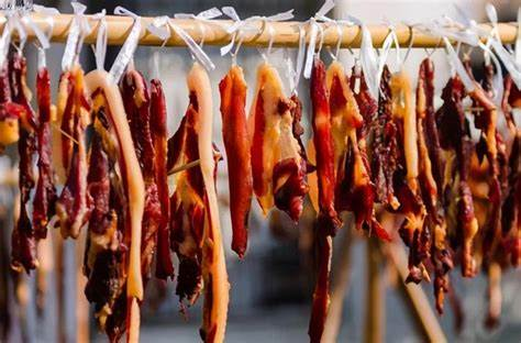 “冬腊风腌,蓄以御冬。” 小雪过后,温度陡降,空气变干,正是制作腊肉的最佳时机。腊肉会在春节前腌制、风干完毕,之后人们就可以围炉享用美食了。在过去,存储条件有限,人们发明了多种保存食物的方式,腌制肉是其中的一种。这样一来即便在严寒的冬天,全家都可以足不出户吃上肉了。有些人甚至认为,腊肉尝起来比鲜肉更美味。