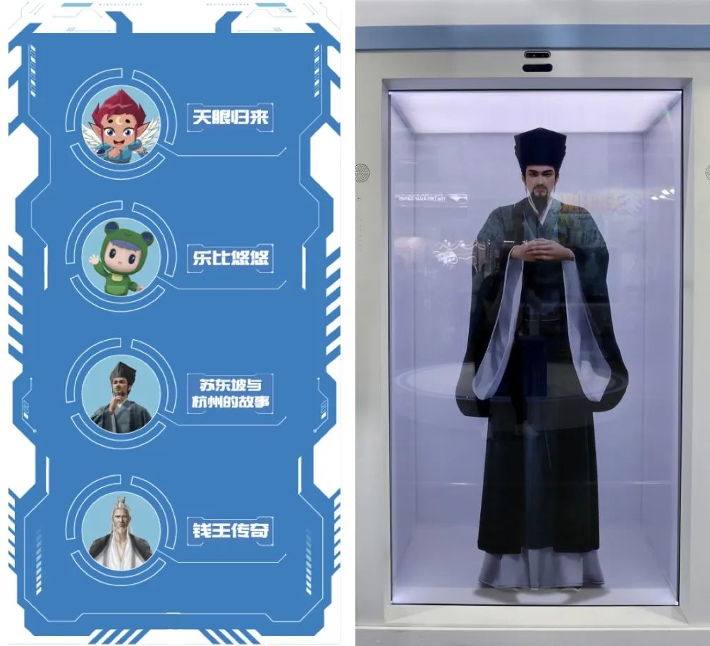 作为展区另一大亮点的数字人全息舱,能真实重现人和物体的立体效果。观众在现场可突破虚实隔阂,与元宇宙世界的苏东坡、钱王等宋韵IP和天眼、香菱等动漫IP数字人跨时空互动。