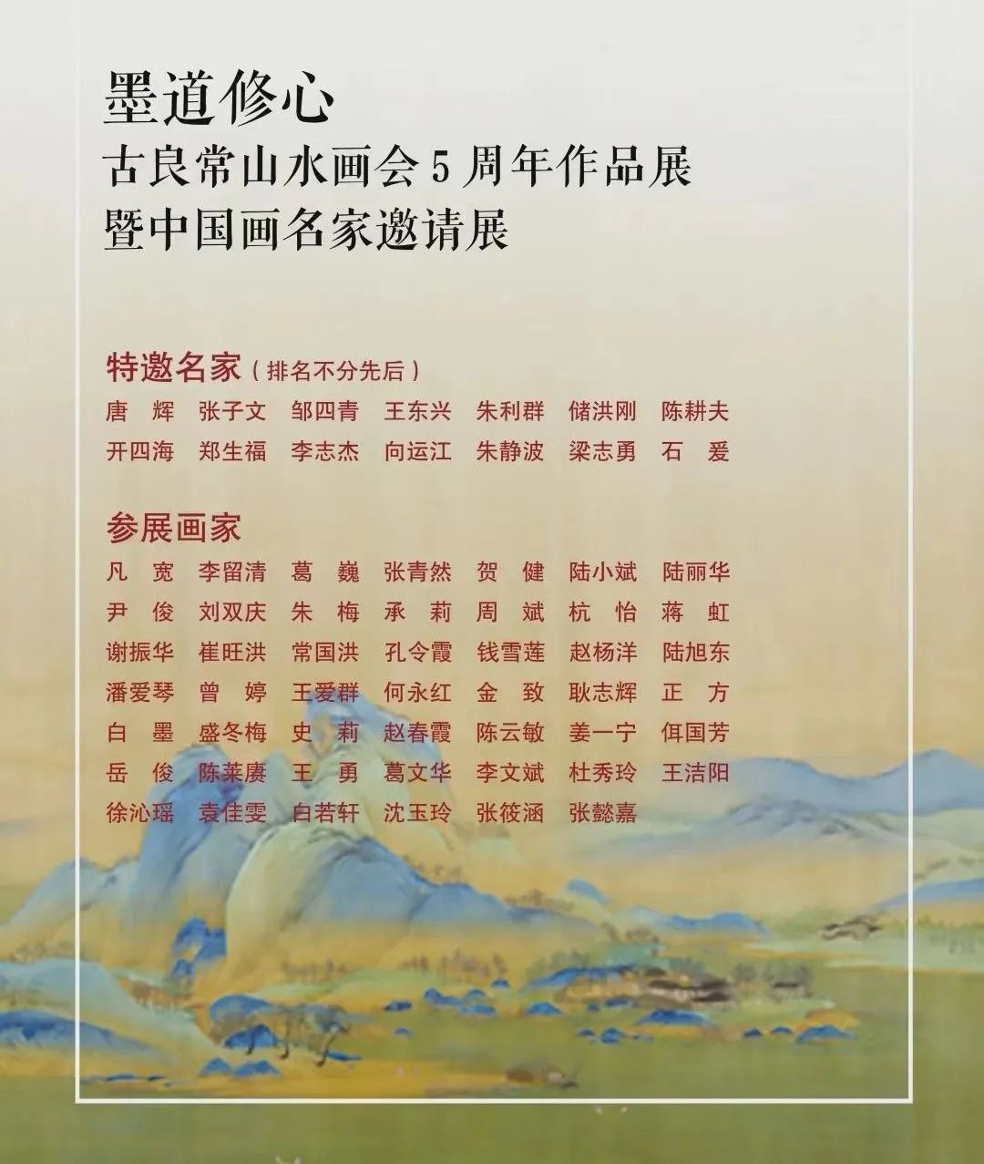 5年回眸,一路跋山涉水,向难向高处而精神行走。古良常山水画会守望艺术,凝心聚力,60多位会员携手并肩,结集出发,风雨兼程。习画姿态种种,却持有不灭的信念和韧性。敬畏山水,崇尚自然。山水之路崎岖,山水之作有波折,有休憩,有顿悟,亦有“撑杆跳高”,一飞高起!山不穷,水不尽,山明水秀在前面!一张白纸,从零启封。走进古良常山水画会,触摸艺术之门,呼吸艺术之气息,渐有长进和收获。静心品味,于展出作品中窥见一斑。画山画水,自然清新,从容淡定。画山画水,山情水韵,不见烟火燎原之形,不闻脂粉飘溢之气。