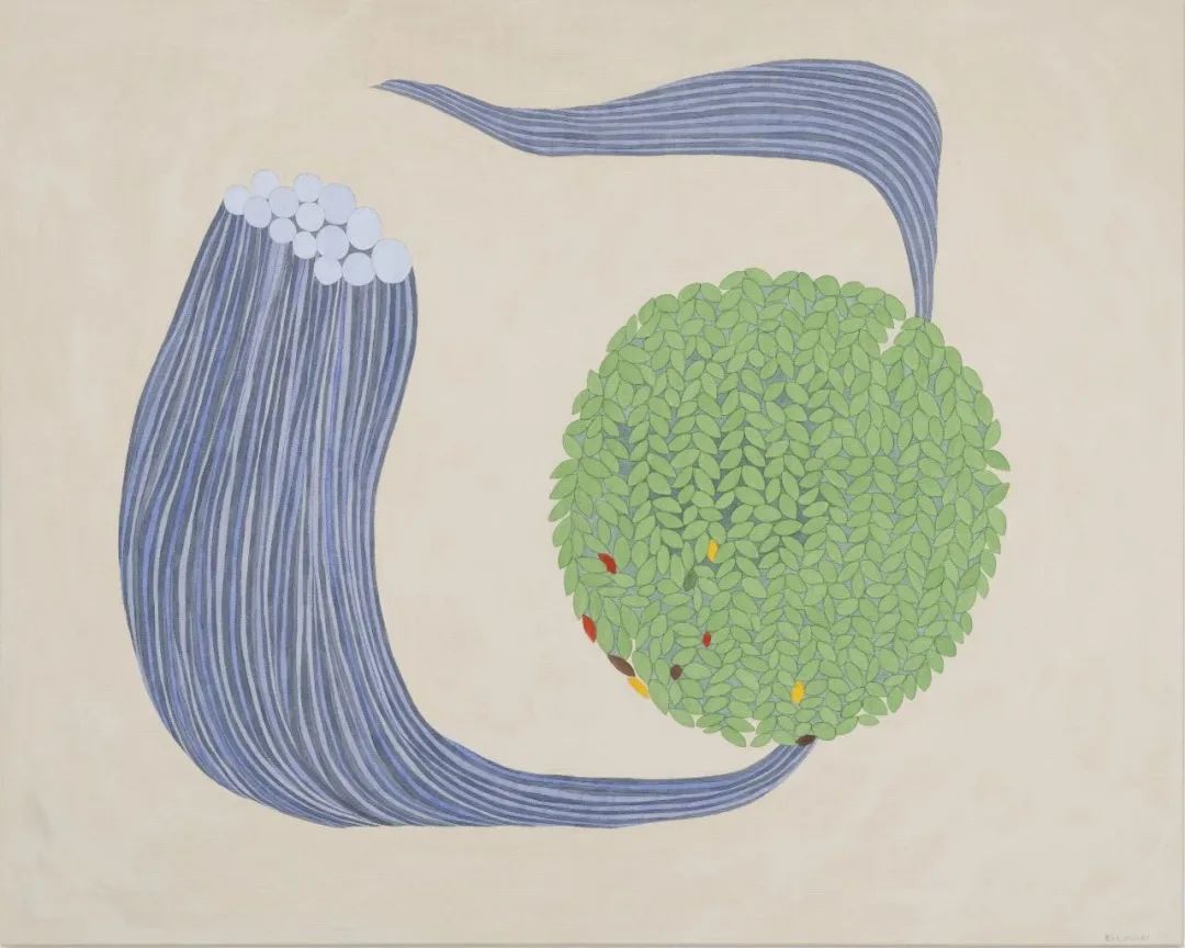 本次展出的作品,同时也呈现了绵引展子经历疫情后的思考。绵引展子认为,当我们思考如何与他人重新连结时,同样也需要考虑自我是以何种面目示人,因此自我除了自己认识的我,还有他人眼中的我,以及不可名状的我。这也是本展英文展名定为Three In One之意(日文展名则为“三つ巴”,三者互动的状态)。绵引展子的画作简单而充满丰富的想象,具有强烈的质感和触感,耐人寻味。艺术家以细致优雅时而诙谐的描绘,在看似冷静的观察中展开温柔的联想,探“人与植物”的距离,如何“靠近”甚至“化为花”,这些形象让观者建立联系,与他者和自我进行对话,然后如植物与花朵般伸展变形。