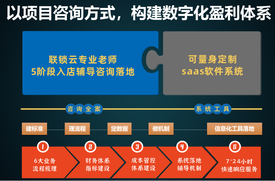 通过优秀的效益管理+专业的辅导推行+督导保障落地+信息化落地一套的系统流程,用数据来体现经营上所有环节遇到的问题,针对问题专业老师指导提供一套可解决的方案,从而为企业开源节流,降低经营成本,提高竞争力。