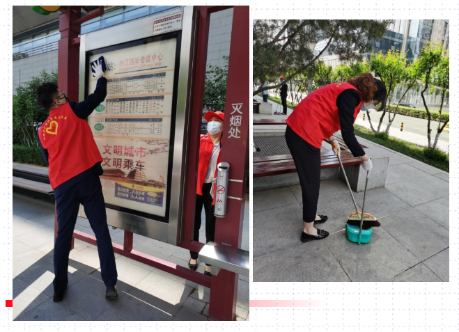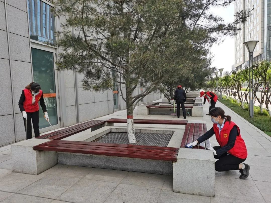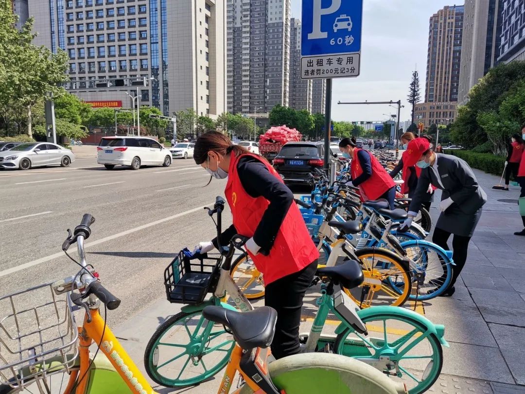 美化环境,你我先行。活动现场,共青团员们对西安曲江国际会议中心外围及周边区域的路面、绿化带、座椅、垃圾桶、路灯杆、公交站牌、共享单车等公共设施进行卫生清洁。