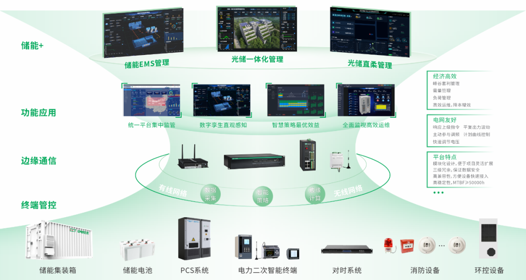 基于“源网荷储”新型电力系统的先进储能系统,借助“云大物移智链”等技术,实现分布式储能系统的集中管控和运维,可服务工商业客户各类储能应用场景,提高储能系统的安全性、可靠性和经济性。