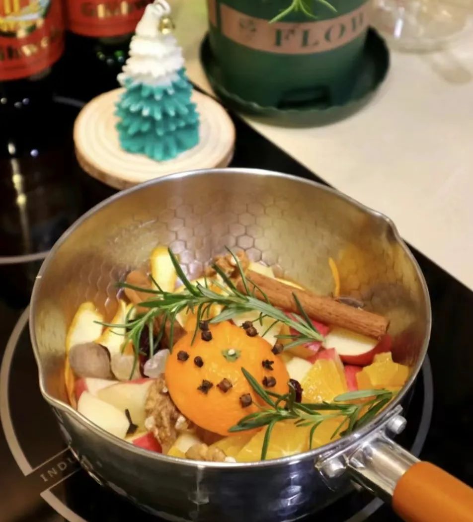水果:橙子/苹果/柠檬/砂糖/丁香/肉桂条/八角茴香(根据人数选择具体数量)