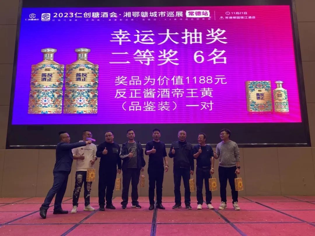 11月21日晚,由仁创糖酒会主办、反正酱酒独家冠名的“反正酱酒之夜”及CFDC仁创糖酒会经销商俱乐部常德分会联谊晚宴,现场美酒佳肴、惊喜抽奖、高潮迭起、气氛活跃。出席本次活动的嘉宾有:常德市市场监管局领导、常德市酒业协会常务副会长李建春、湖南沃成科技有限公司副董事长、贵州酒中酒集团酒中酒霸/反正酱酒营销中心销售总监苏双国、仁创会展集团副总裁陈虞华 、南京卓尔资讯创始合伙人曹庆兵等。