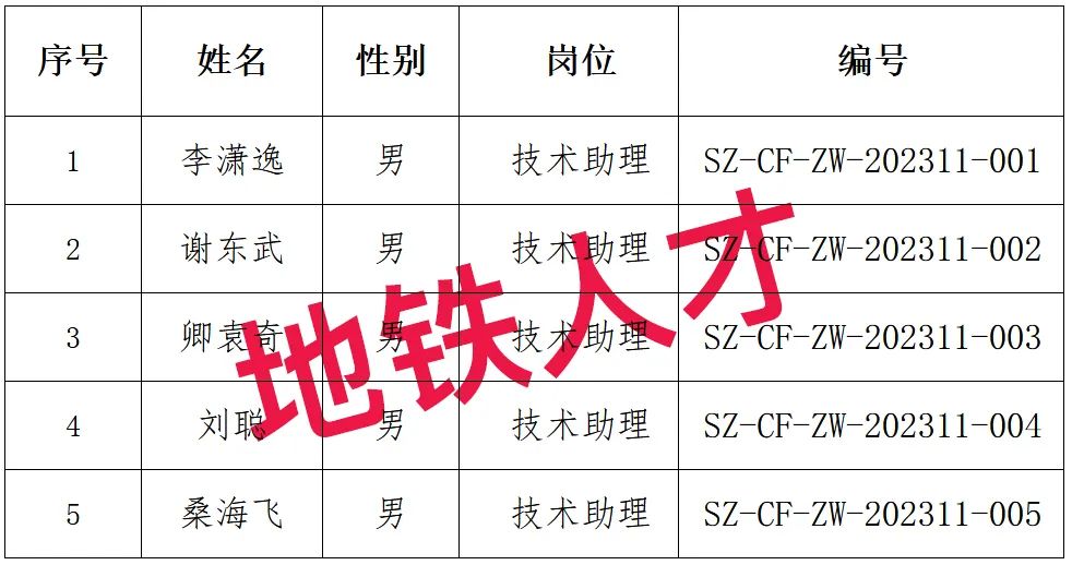 1、5人!上海申通地铁集团有限公司技术中心2023年11月社会招聘录取名单公示