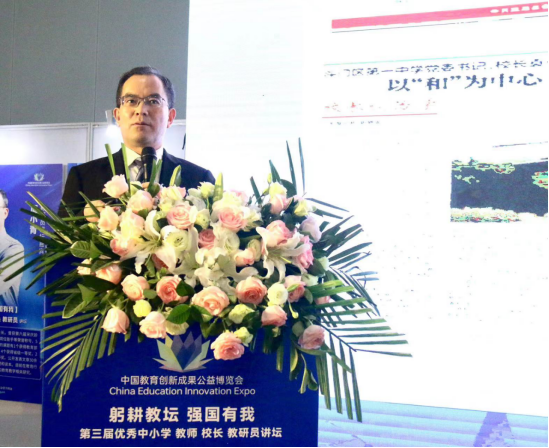 论坛上,珠海市斗门第一中学党委书记、校长袁长林也受邀作《“和”而不同,“明”创未来——构建珠海市斗门第一中学卓越品质校园》主题演讲。