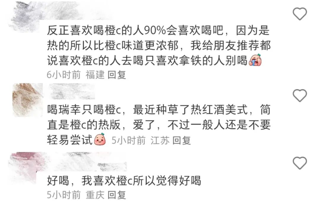 据瑞幸官方介绍, 热红酒美式中含有热红酒风味调味糖浆和含量约等于一个橙子的橙汁,聪明的网友们立刻发现,那这岂不就是早已下架的橙C美式+红酒?于是便出现了另一种声音:好喝!“反正喜欢喝橙c的人90%会喜欢喝吧,因为是热的,所以比橙c味道更浓郁。”