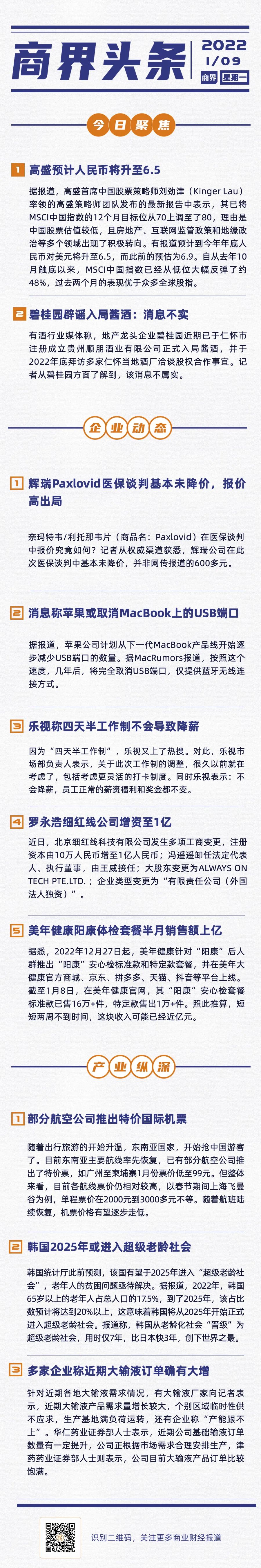 【商界头条】碧桂园辟谣入局酱酒;部分航空公司推出特价国际机票;苹果或取消MacBook上的USB端口