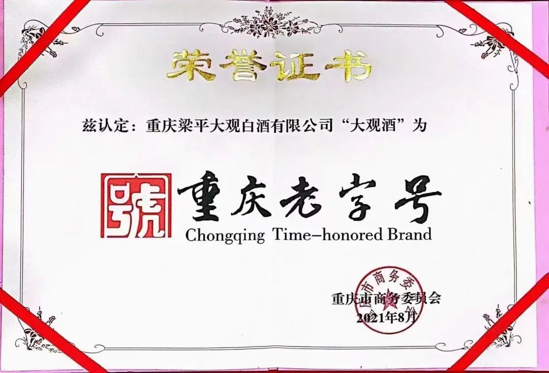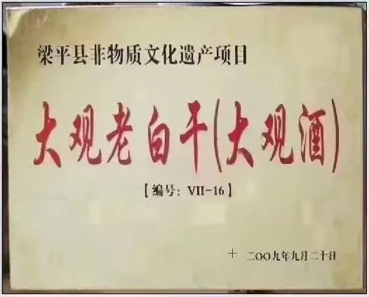 2009年,“大观酒”被梁平区政府列入首批“非物质文化遗产”项目产品。今年,大观酒专用的“梁平梁山酒曲”列入非遗项目。