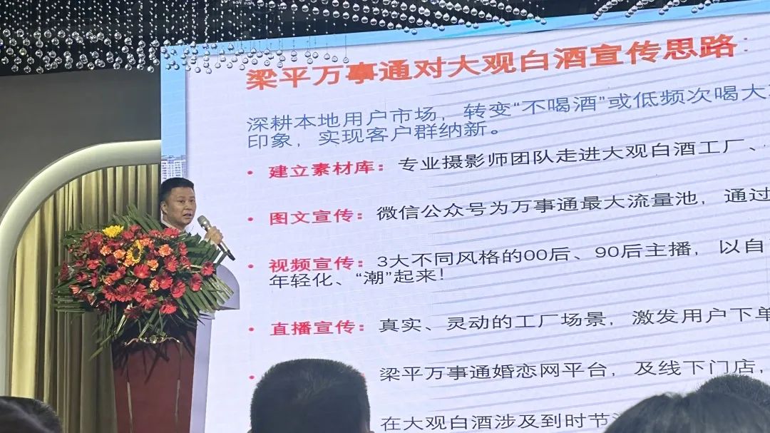 梁平万事通创始人老傅讲述了梁平万事通的发展历程和现有团队,表达了与大观白酒达成战略合作的诚挚愿景。万事通将全力为大观酒打造品牌文化,提高大观酒的品牌影响力。