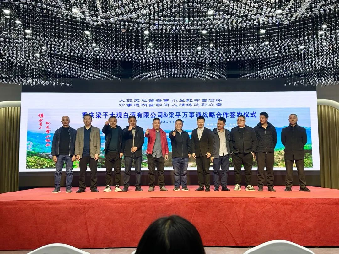 11月20日上午,大观白酒与梁平万事通战略合作签约仪式在平野酒店进行,在场的大观白酒相关负责人、经销合作商以及梁平万事通全公司人员共同见证了这一重要时刻。双方将优势互补,合作共赢,通过跨界整合、平台推广,推动梁平大观白酒更快更广地走进千家万户。