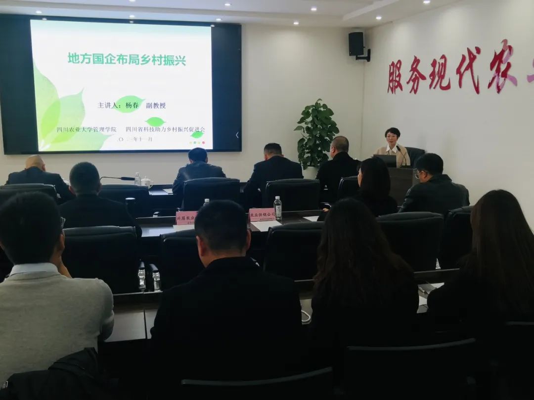 为学习乡村振兴及农业化产业相关政策、探索国企助力乡村振兴的政策及路径、提升公司相关人员的农业产业理论水平,为公司高质量发展奠定基础。11月20日,市农投公司党委组织开展了“农投大讲堂”第十三期——地方国企布局乡村产业振兴专题培训会。本次培训由四川农业大学农林经济管理系副主任、省科技助力乡村振兴促进会副秘书长杨春教授主讲。市农投公司领导班子成员、三级公司领导班子成员和相关人员出席了会议。