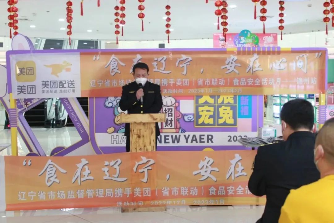 为加强网络餐饮食品安全管理,提升网络餐饮食品安全水平,进一步建立健全外卖配送行业食品安全监督机制,激发多元社会力量共同参与食品安全治理,积极营造食品安全共治共享良好氛围。在辽宁省市场监管局统一部署下,2023年1月9日,锦州市市场监管局联合美团集团,在大商锦绣前程举办“食在辽宁,安在心间”活动暨外卖骑手食品安全流动监督员受聘启动仪式。美团集团、市场监管系统、商户及外卖骑手代表等参加启动仪式。