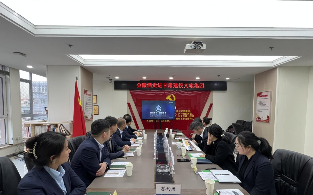 王旭对刘文广一行的到来表示欢迎,并对文旅集团相关情况进行介绍。文旅集团自成立以来,以产业结构升级为主线,以市场化开发为导向,打造了差异化、多元化、专业化、国际化的产业体系。现打造了传媒、影视文创、酒店、旅游、商贸、工保咨询、保险经纪等多元化板块。此前在文旅集团主办的“千车万人·‘火星’穿越 镍都金昌·‘山猫’狂欢”大型文旅活动中,金徽酒做为联合承办方,对活动给予大力支持与帮助,并在金昌市引起较好较大反响。他表示,通过合作,双方可以实现资源共享、优势互补,共同打造精品产品,提升文旅与酒业的市场竞争力。
