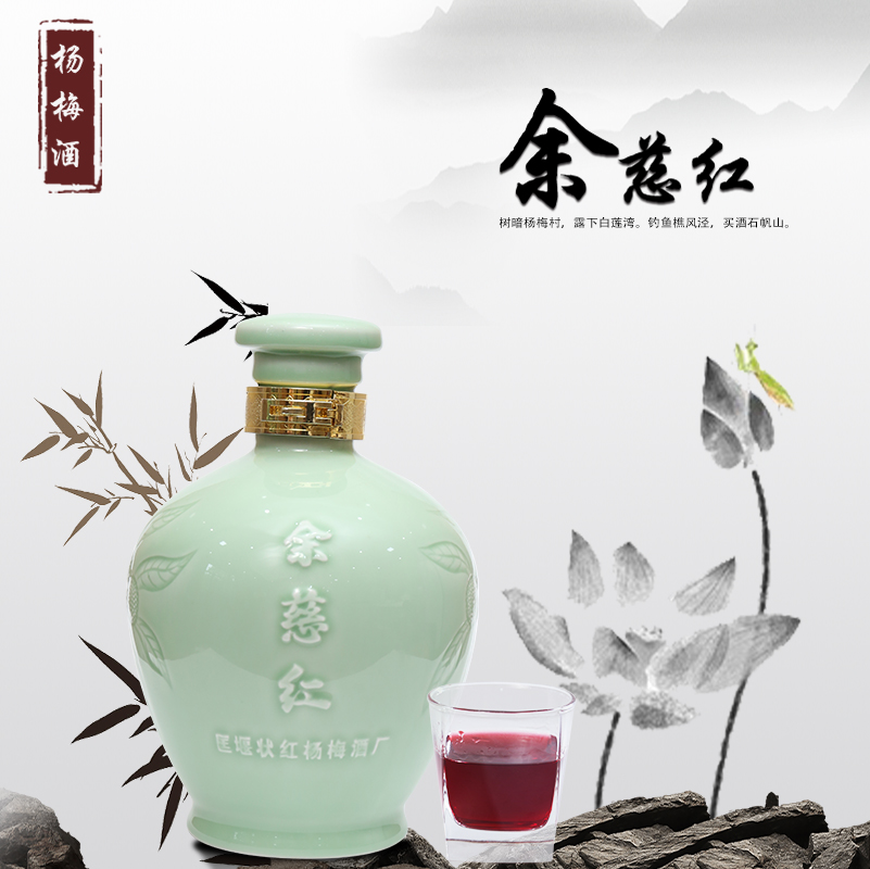 采用温润如玉的青瓷作为酒器,一抹天青色,尽显回归自然的意境之美。白酒尊崇古法纯粮、纯手工酿造,经窖藏发酵,在岁月的凝聚中白酒更显醇香柔和。杨梅采用个大、色黑、味甜的新鲜杨梅,陈酿和新鲜杨梅相互碰撞,浸泡出浓郁醇厚、甘甜香醇的余慈红杨梅酒。
