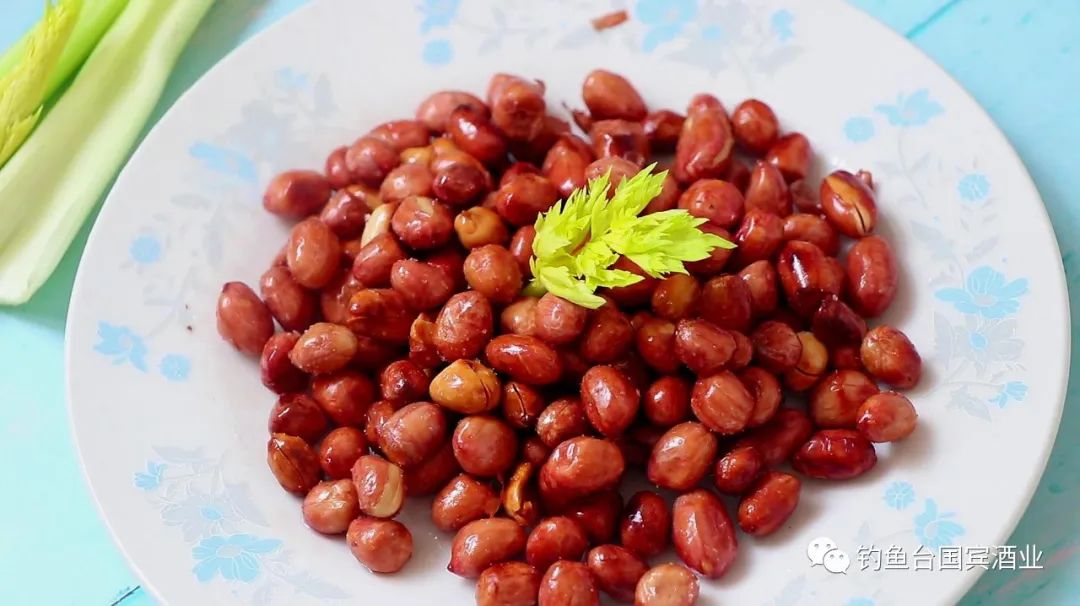 将油炸花生米盛入盘中,趁热洒少许白酒,可保持花生仁酥脆不回潮。
