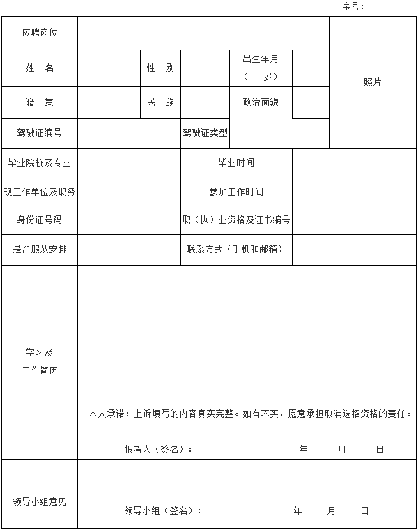萧县城乡公共交通有限公司 招聘工作人员报名表