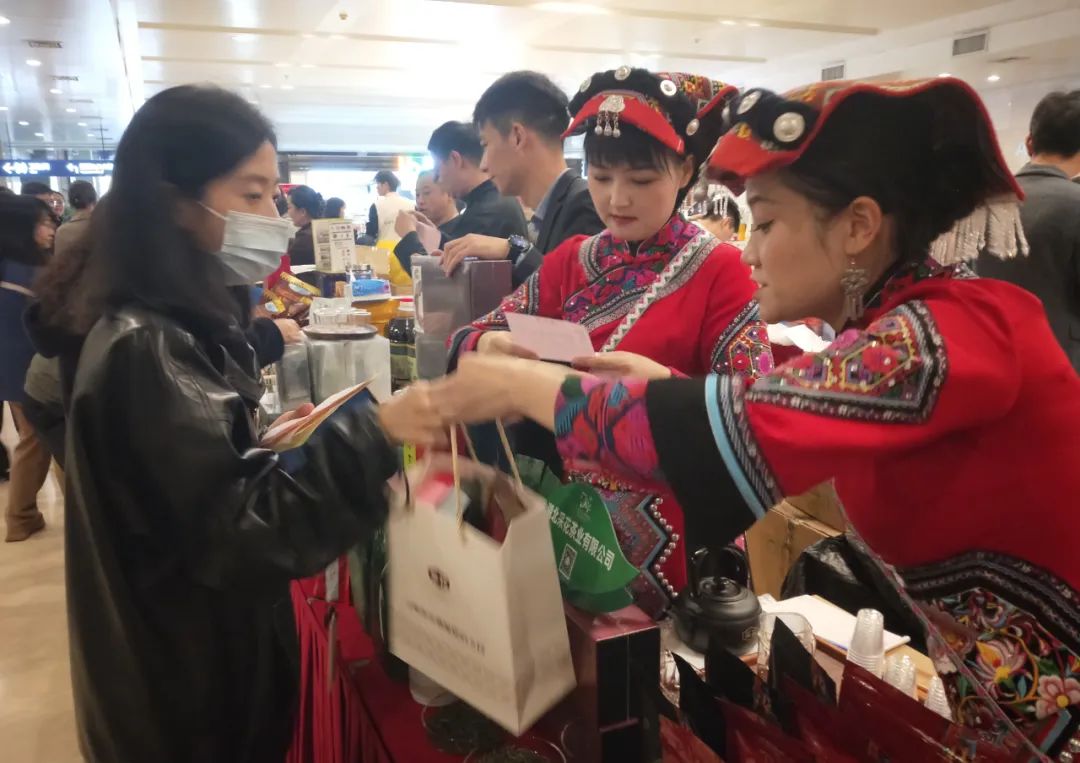 展销会上,武钢集团职工聚集在采花茶业展位前,纷纷为心爱的采花茶买单。