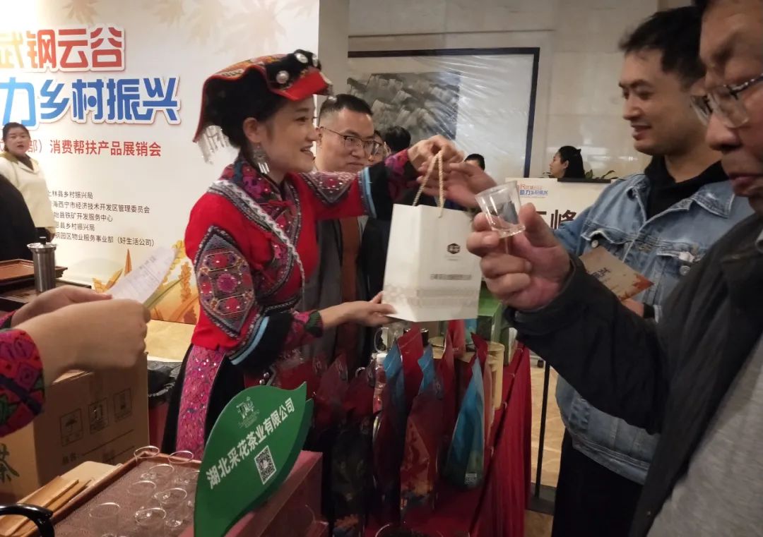 除了现场展销外,武钢集团还专门开设了武钢集团(宝武武汉总部)爱心助农体验馆,长期展示和销售各帮扶地区农产品,还与湖北供销合作电子商务有限公司合作建立了“武钢集团(宝武武汉总部)消费帮扶专区”线上采购平台,方便职工购买采花茶等优质农产品。