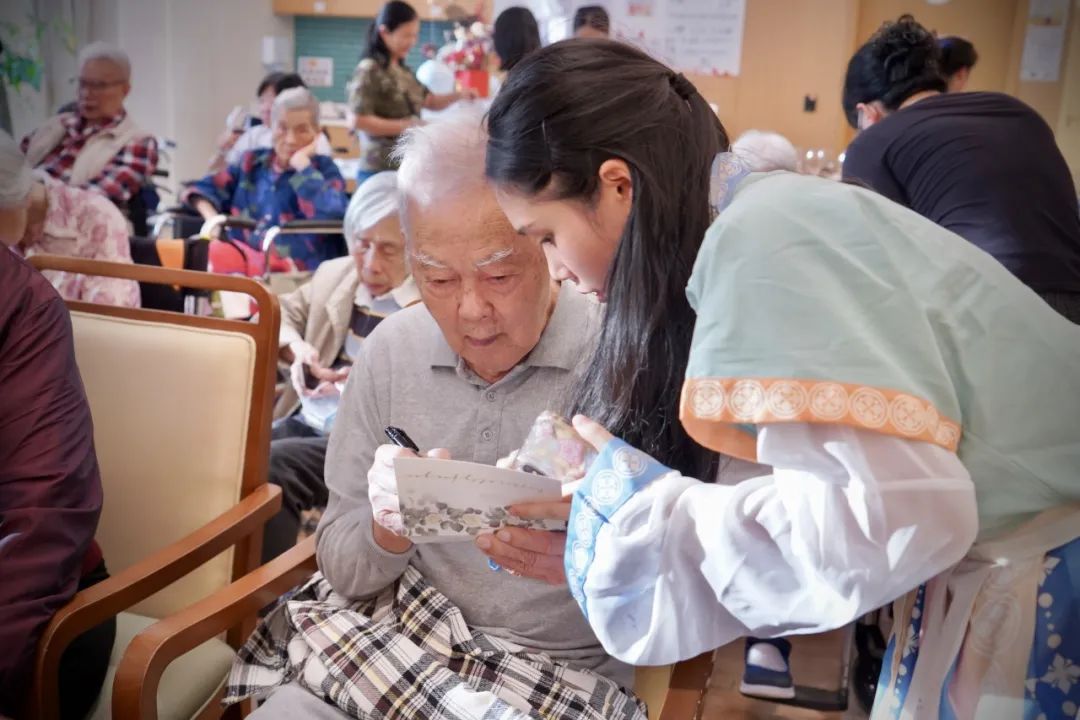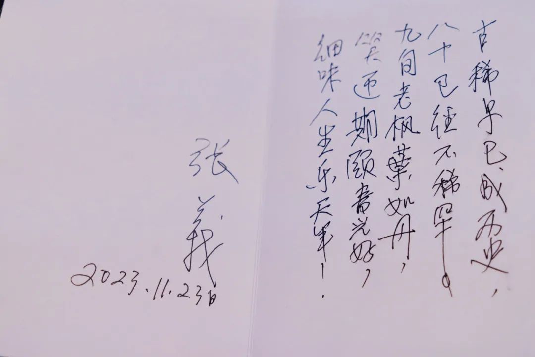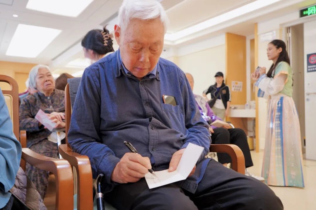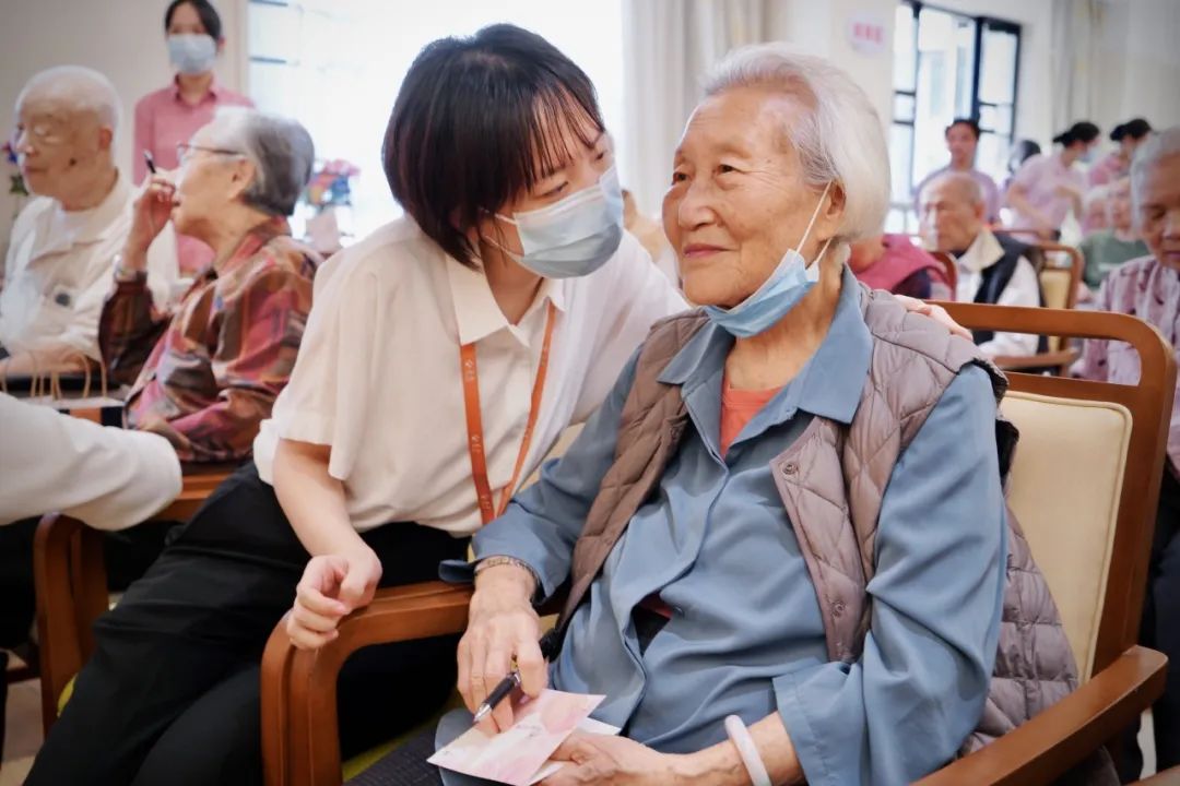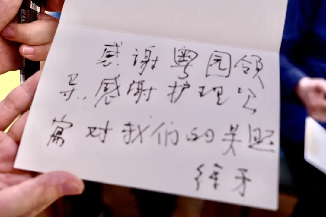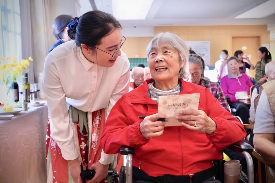 许多平日里羞于表达的护理长辈,也拿起贺卡写下了最想感激的服务伙伴。张叔叔更是文采斐然,欣然写道:“古稀早已成历史,八十已经不稀罕。九旬老枫叶如丹,笑迎期颐春光好,细味人生乐天年!”