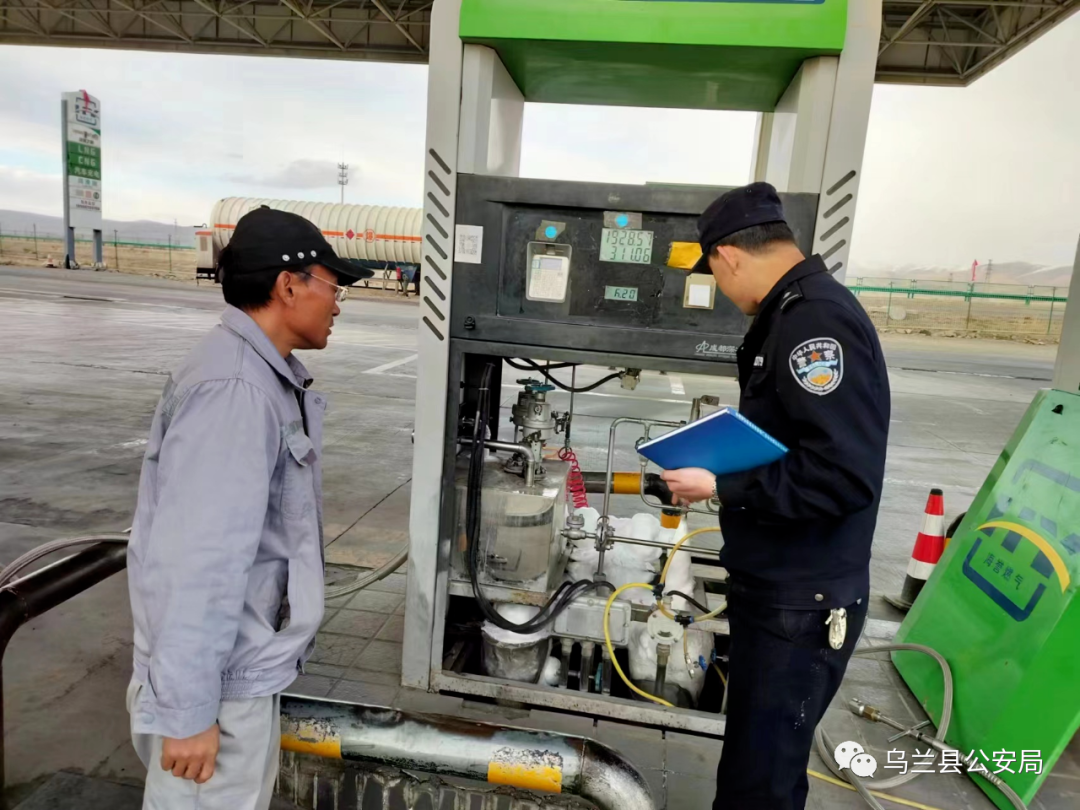 为进一步加强辖区燃气安全使用管理,防范燃气安全事故发生,确保社会治安形势安全稳定。近日,茶卡派出所深入辖区各重点领域、重点行业开展燃气安全隐患排查整治行动,全力确保辖区安全稳定。 检查中,民辅警结合“百万警进千万家”活动,深入辖区小餐饮店、饭馆和辖区加气站等燃气等使用场所,重点对使用天然气、瓶装液化气的餐饮场所燃气管道安装和使用是否规范、煤气罐是否超期使用、是否在人员密集场所设置易爆危险品储瓶间、房间通风是否良好、加气站消防设施是否齐全、加气站人员是否进行培训等情况进行了详细检查。同时,民警要求场所管理人员要切实承担起责任,积极三动的开展消防安全检查,做到不漏死角、不留隐患,努力确保场所内的消防安全。下一步,茶卡派出所将持续强化燃气领域安全隐患排查治理,确保燃气安全隐患排查整治到位、宣传到位,以实际行动切实守护好辖区群众生命财产安全。