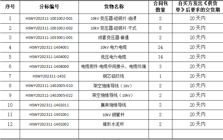 本次招标要求投标人须为中华人民共和国境内依法注册的法人或其他组织,须具备相应货物的制造能力,并在人员、设备、资金等方面具有保障如期交货等承担招标项目的能力。除特别注明外,这些资格、资质、业绩均系投标人本企业所拥有的权利权益。 本次实行网上发售电子版招标文件,潜在投标人应在国家电网公司电子商务平台-电工交易专区(网址:https://sgccetp.com.cn),以下简称:电工交易专区,注册并办理CA证书电子钥匙方可购买招标文件,电子钥匙的购买流程请登录电工交易专区网站“平台注册”——“电脑配置及电子钥匙”下载所有文件仔细阅读。电子钥匙的办理需要一定的时间,请潜在投标人高度重视。由于没有及时办理电子钥匙导致购买招标文件失败,后果由潜在投标人自行承担。 凡有意参加投标者,请于2023年11月22日系统实际可获取招标文件的时间起至2023年11月27日23:59时(北京时间,下同),登录国家电网公司电子商务平台--电工交易专区下载招标文件,并按《电子招标投标办法》等国家法律法规要求,到第三方认证机构办理CA证书电子钥匙。 本次招投标采用全电子化,不再接收纸质投标文件,招标文件其他章节中对纸质文件内容的要求转换为对电子版内容的要求,对纸质文件递交及使用的条款均不适用。 光盘投标文件:提供全部完整的支持证明材料的投标文件应为具有法律效力的带有电子签名(章)的电子版商务、技术文件、开标文件、报价文件、投标保证金电子版(已交款的证明材料扫描件)和《“重法纪、讲诚信、提质量”承诺函》、《投标文件内容一致性承诺函》等,命名方式为:xx标段(标段名称)包x、包x-技术文件/商务文件/开标文件/报价文件-投标人名称。上述文件均考入不可复写的只读光盘中,并将上述电子投标文件同步提交至招标人招投标信息系统国家电网公司电子商务平台-电工交易专区(网址:https://sgccetp.com.cn)、投标服务平台(http://sc.zhkeang.com),投标服务平台操作手册详见附件3。 (1)提供“资质业绩凭证单”的投标人:应按要求在国家电网新一代电子商务平台中生成资质业绩凭证单(以下简称“凭证单”)。凭证单载明的有效已核实数据将作为评审依据,不需提供支持证明文件。提交“凭证单”的投标人,其业绩以凭证单载明的已核实数据为准,其他业绩及其支撑证明文件无需编入投标文件,编入的不作评审。提交“凭证单”的投标人,除供货业绩外需要更新补充已核实范围外相关报告、证书、生产试验设备的,应提供带有电子签章的对应支持证明文件,编制在对应的商务或技术文件。 (2)未提供“资质业绩凭证单”的投标人:按《投标文件格式》要求,提供全部完整的支持证明材料的投标文件,加盖电子签章,编制在对应的商务或技术文件。 对于采取现场递交投标文件的,本次投标的所有投标文件集中接收时间:2023年12月11日,上午9:30-11:30,下午13:30-16:30。递交地址:北京市怀柔区雁青路15号大雁楼宾馆。联系人:肖女士联系电话:13311218102 对于采取邮寄方式递交投标文件的,邮寄到达指定地址的截止时间为:2023年12月12日上午11:00(北京时间),邮寄地址:北京市怀柔区雁青路15号大雁楼宾馆。联系人:肖女士联系电话:13311218102 光盘投标文件现场递交的截止时间(投标截止时间)为:2023年12月12日上午11:00(北京时间);电子投标文件提交招标人招投标信息系统(电工交易专区)、投标服务平台(http://sc.zhkeang.com)的截止时间同上。