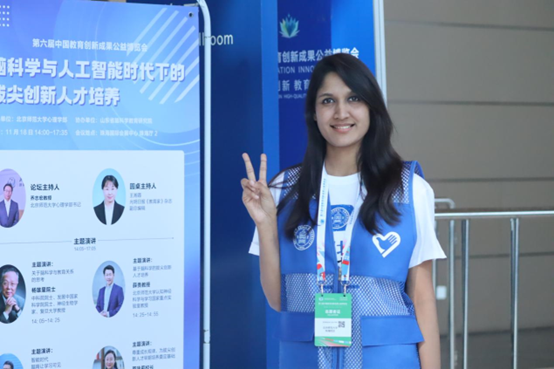 裴明蓉想通过担任教博会的志愿者更直观地了解中国的教育情况、认识更多志同道合的朋友。在这个过程中她收获了很多书本上学不到的东西。