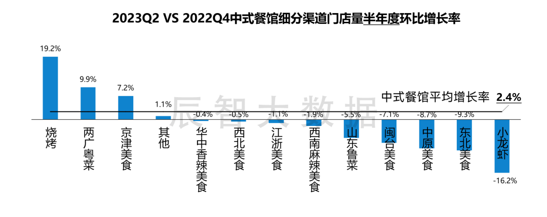 淄博烧烤有多风靡呢?我们去看背后的数据,今年整个中式正餐平均增长率只有2.4%,但是烧烤接近20%,淄博烧烤带动整个烧烤品类实现了20%的增长。所以一个区域性的、现象级的品类,我们说它炒作可能不太恰当,但它就是一个地方性美食获得认可的过程,真正推动了整个品类的增长。
