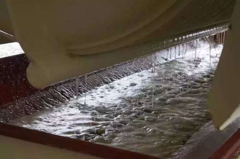 对于白葡萄来说,破皮完成后,葡萄就会被送入压榨机榨成葡萄汁,然后会被泵入大池子中,并在这里进行澄清与分离。在大池中,葡萄皮和葡萄籽等会自然沉入池底,在进行发酵前须将这些沉淀与葡萄汁分离。