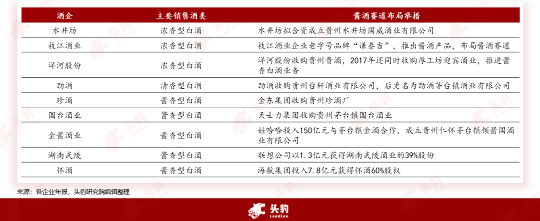 中国酱酒竞争格局呈现“一超多强”的局面,市场中充斥大量的小规模酒企业。由于在信息高度碎片化的情况下打造出高端品牌的难度非常大,因此未来很难有机会诞生大量有强实力的新玩家。目前,茅台作为超高端酒企独占酱酒细分赛道的鳌头,并且未来很难被逾越。从茅台供给侧看,强大品牌力叠加严格品控下的高品质,以及稀缺的基酒产能,奠定了其在超高端价格带难以撼动的优势地位。酱酒龙头企业茅台持续抬高价格,酱酒的第二梯队企业也借助价格上涨的势头通过差异化的战略打造新型的轻奢品牌,同时推出新轻奢大单品。酱酒赛道中的小企业主要集中在中低端白酒的市场中,重点瞄准自饮需求,并且向宴请场合渗透。