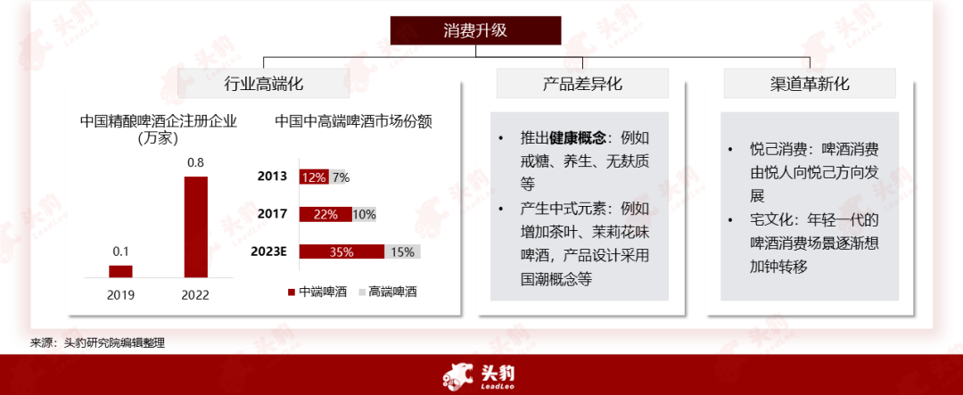 中国啤酒行业现位于存量博弈阶段,高端化成为啤酒行业的发展趋势,而消费升级正式背后的核心驱动力。随着中国经济的持续发展和人民生活水平的提高,消费者对于啤酒品质和口感的要求也在不断提高,这促使啤酒厂商不断进行产品研发和创新,提高产品的品质和口感,以满足消费者对于品质化的需求。