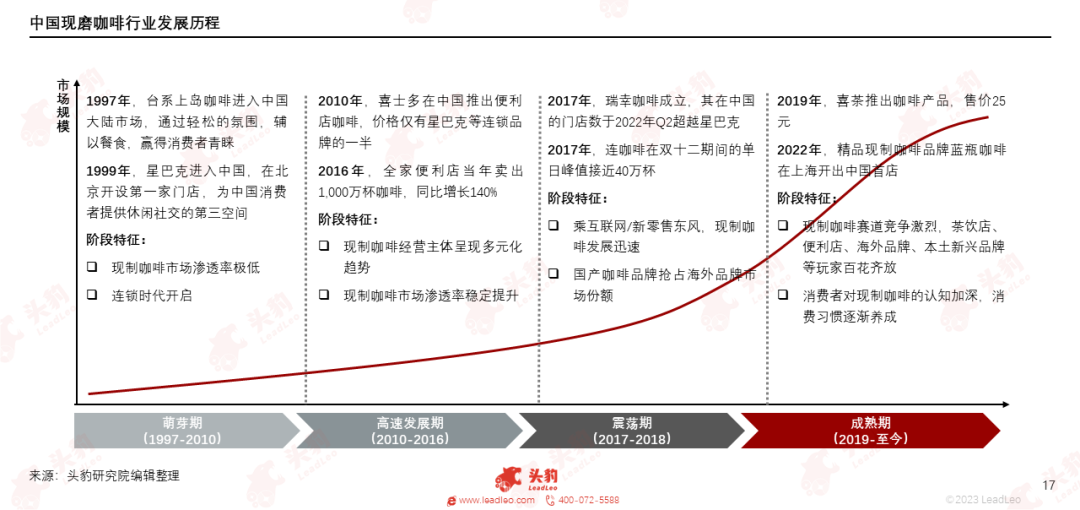 3)我国现磨咖啡行业处于生命周期中的成长期。现磨咖啡行业市场需求逐渐扩大,市场规模逐渐增加,下沉市场仍存在较大空间,投资需求强烈,发展前景乐观。
