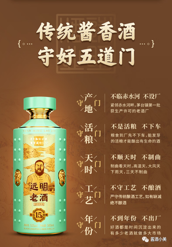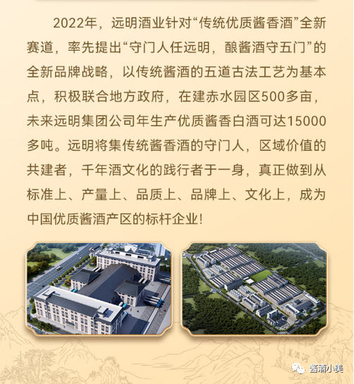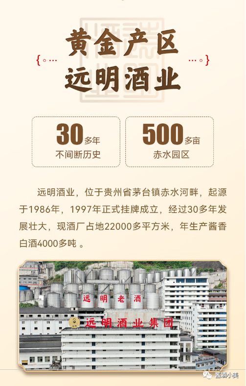 远明酱酒其酿酒历史文化悠久,在茅台镇也是属于酱酒领域的翘楚品牌,并且多次在大赛上获得奖项,旗下的白酒单品在茅台镇以及全国都有着很好的表现;在其首席酿酒师”任远明“大师的指导下,配上传统”12987“的酿造工艺,严选出当地优质的红缨高粱,让其生产出的远明酱酒具有醇厚绵柔,甘甜清冽,馥郁清香的特点,并凭借着优质的口感与味道,收到了消费者的欣赏与喜爱;远明酱酒以高端,优雅,内敛的产品理念作为自己发展的标杆,深抿一口的滋味,醇厚绵柔的口感可以感受到远明酱酒的深明与远虑。