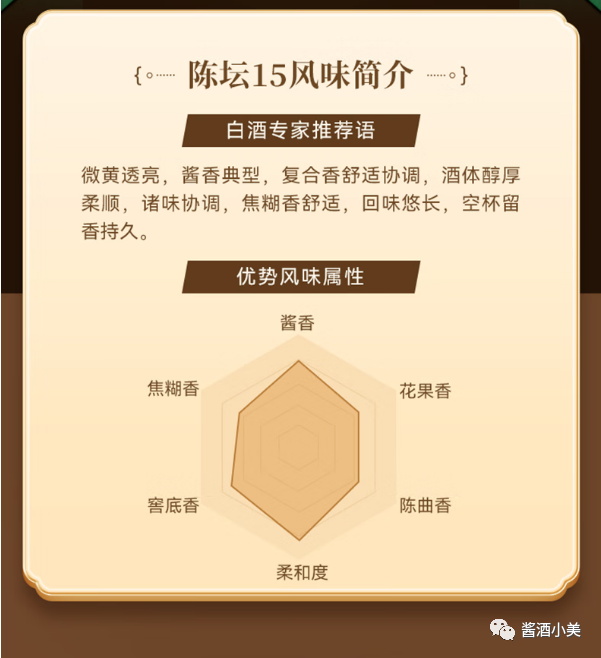 酱香浓郁,口感清醇,回味悠长,酒体适中,可以说是一款合格的酱香酒。其封坛系列也是很有特色,包装上装饰精美,做工精细,极具艺术价值,非常适合收藏,也很适合作为礼物赠送,有一定的收藏价值。