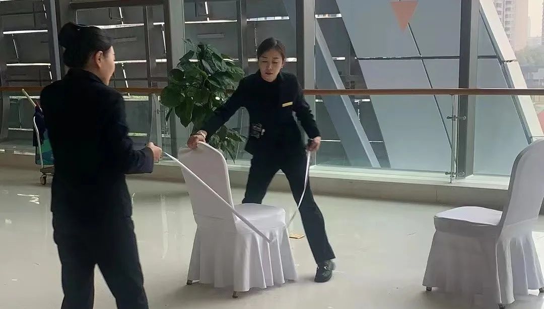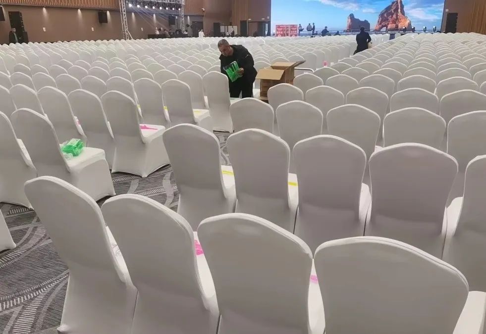 整齐划一的动作、标准的服务细节,不论是会场布置的标准距离、椅子的摆放间隙、通道的设置,均严格拉线丈量,一丝不苟,顺利完成布置任务。