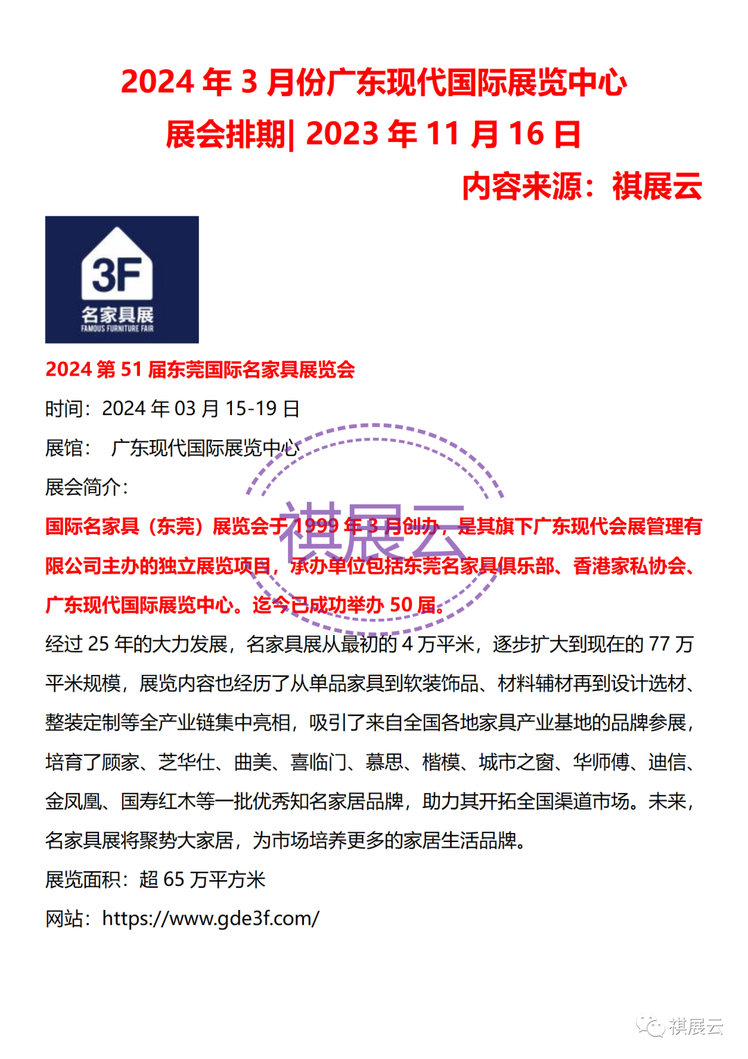 2024年3月份广东现代国际展览中心展会排期| 2023年11月16日