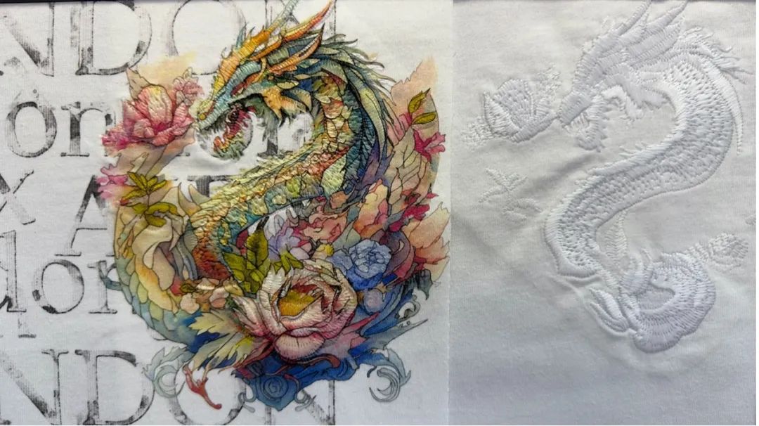 爱普生针对纺织行业中,常见的刺绣工艺,推出了新兴魔彩印绣解决方案——绣+印,通过将高速平台式专业数码印花机爱普生SureColor F3080工业级产能和绣花机结合,将白色的绣线通过数码印花的方式变为彩线。为用户呈现更精美、更高性价比的刺绣数码印花方案。