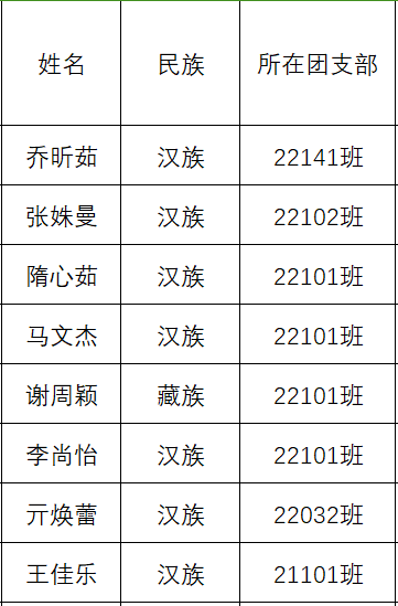 根据《中国共产主义青年团章程》中对发展团员的要求及《上海旅游高等专科学校团员发展流程》有关规范,经个人自愿申请、团课培训及考核、支部大会表决、校团委审核等流程,现将2023年会展与经济管理学院新发展团员(第二批)名单公示如下: