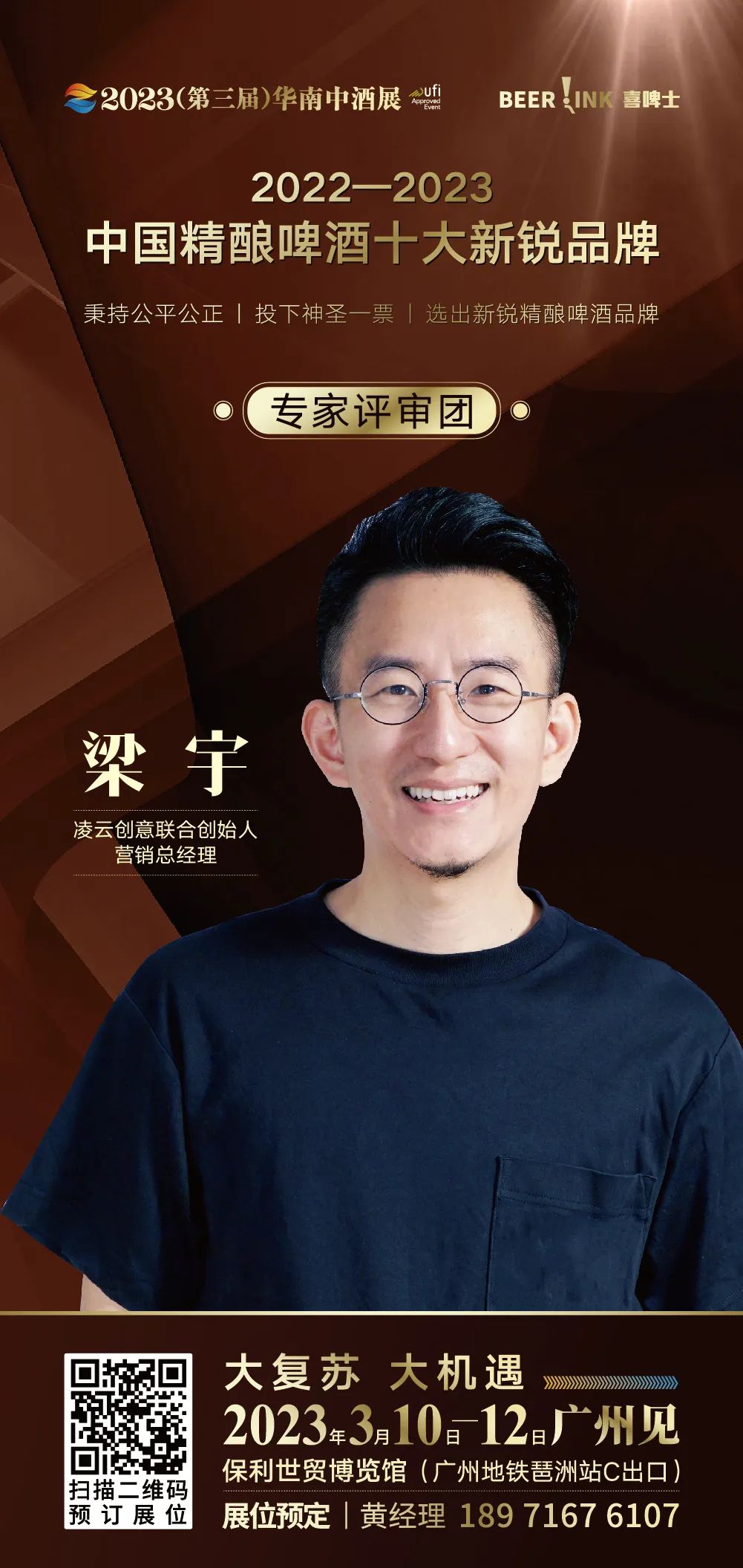 3月10—12日,大复苏 大机遇—2023(第三届)华南中酒展现场,“2022-2023中国酒业年度最具潜力新品”、“2022-2023中国精酿啤酒十大新锐品牌”等5项大奖榜单将正式公布,大奖最终花落谁家?30位大咖邀您一同见证,敬请期待!